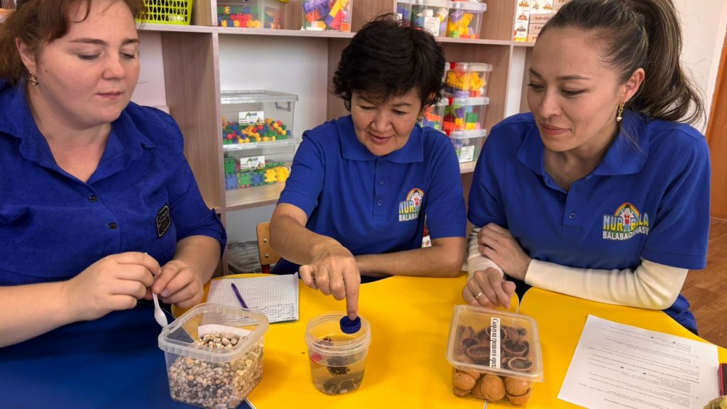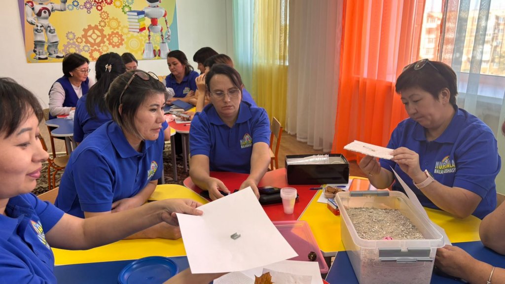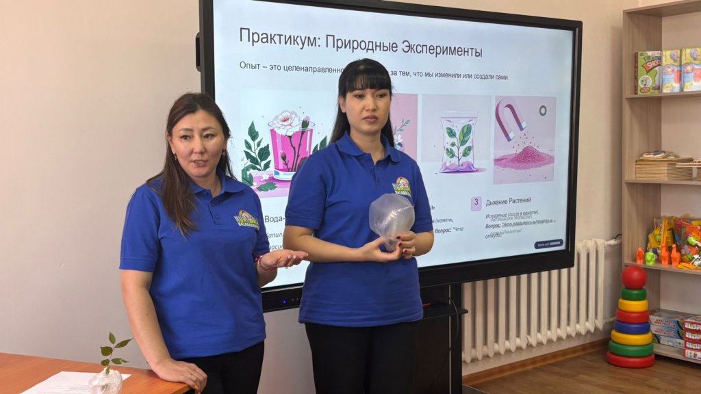 «Нұр бала» бөбекжайының әдіскері Накенова Д.М. педагогтарға арнап «STEM-табиғат зертханасы: қарапайым тәжірибелер, бақылаулар және мектепке дейінгі балаларға арналған жобалар» тақырыбында семинар-практикум өткізді. Бұл – шабыт пен идеяларға толы 2 сағаттық тәжірибелік кездесу болды!