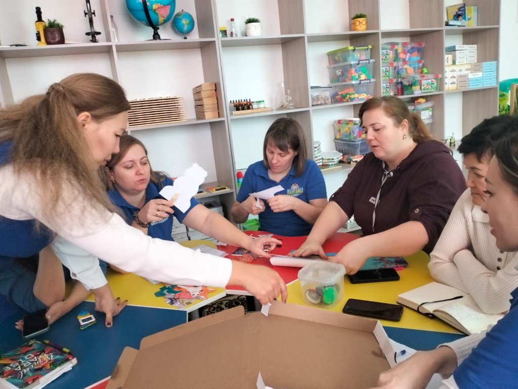 Бүгін біздің дарынды тәрбиешілеріміз Санмия С. және Нәзгүл Ж. әріптестері үшін шабыт беретін шеберлік сағатын өткізді! Олар фланелеграф пен магнитті театр әлеміне еніп, ертегілердің бір түртіспен өмірге келетінін көрсетті. Бірақ біз дайын нұсқада тоқтап қалмадық! Педагогтар қиялдарын жұмсап, жаңа нәрселер жасады: